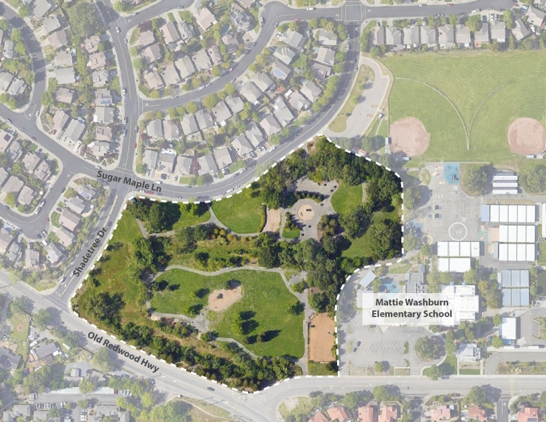 Pleasant Oak Park (renamed David Smith Memorial Park) is an 8.5-acre park located between Old Redwood Highway and Sugar Maple Lane next to Mattie Washburn Elementary School in the Town of Windsor. It features a nature conservation area, playground, picnic area, and dog play area, plus pathways, lawns, and mature trees.
